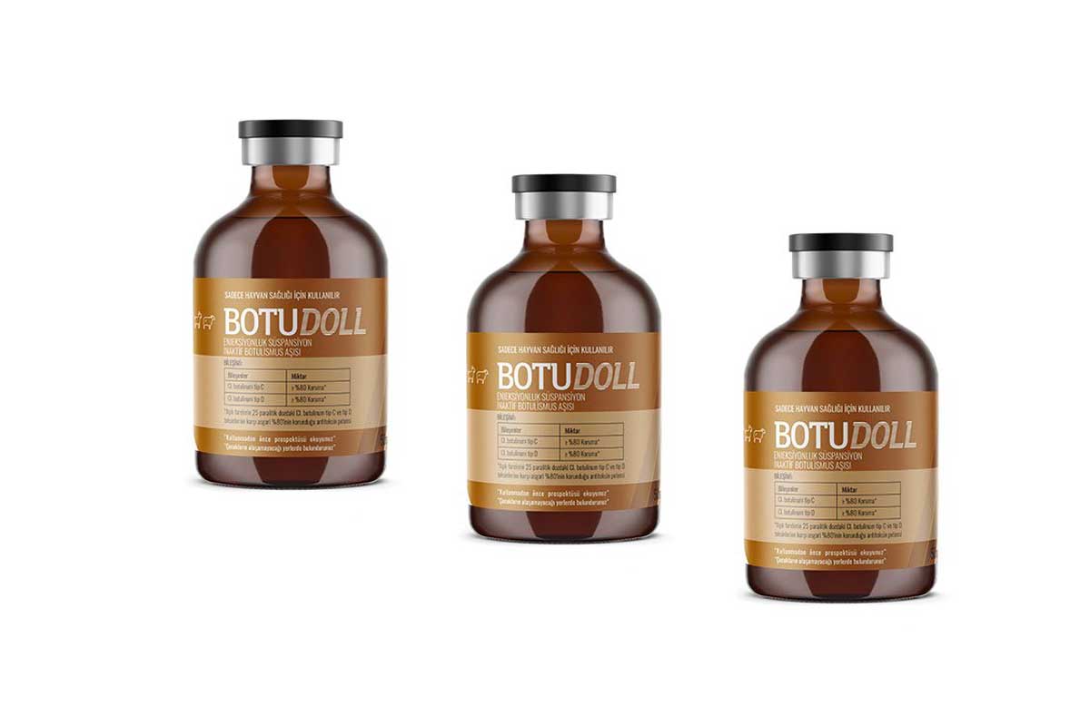 Botudoll Aşı 20 50 ve 100 ml hacimli amber renkli tip II cam ve 50, 100, 200 ve 250 ml hacimli beyaz plastik şişelerde 10, 25, 50, 100 ve 125 sığır dozu veya 20, 50, 100, 200 ve 250 koyun ve keçi dozu olarak ambalajlanır. Cam ve plastik şişeler aynı bütil tipa ve alüminyum kapak ile kapatılmış şekilde etiketlenir.