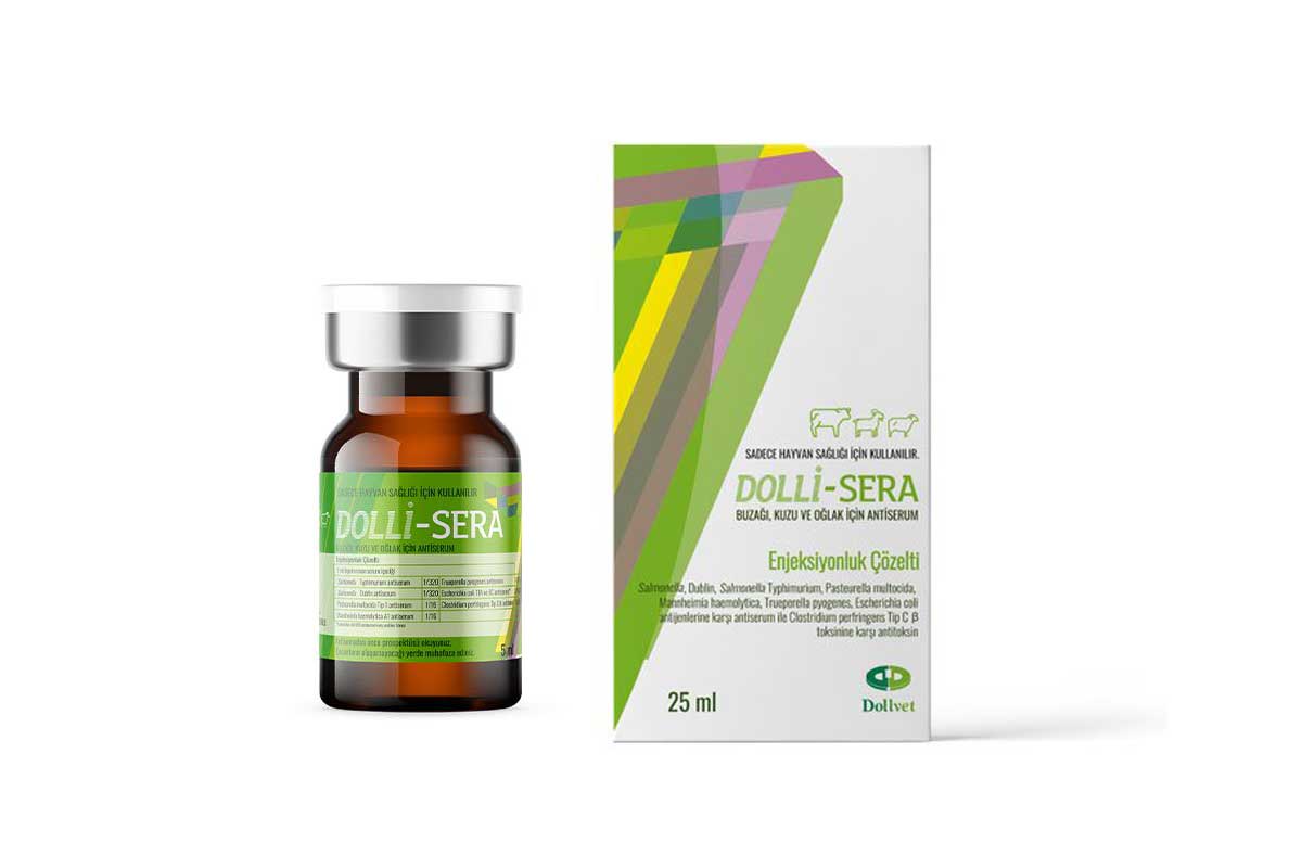 Dolli-Sera; Salmonella Dublin, Salmonella Typhimurium, Pasteurella multocida, Mannheimia haemolytica, Trueperella (Arcanobacter) pyogenes ve Escherichia coll antijenleri ve Clostridium perfringens Tip C B toksinine bağlı buzağı, kuzu ve oğlakların septisemik, enterik ve respiratorik enfeksiyonlara karşı koruyucu ve hastaları tedavi etmek amacıyla kullanılan hiperimmun serumdur.
