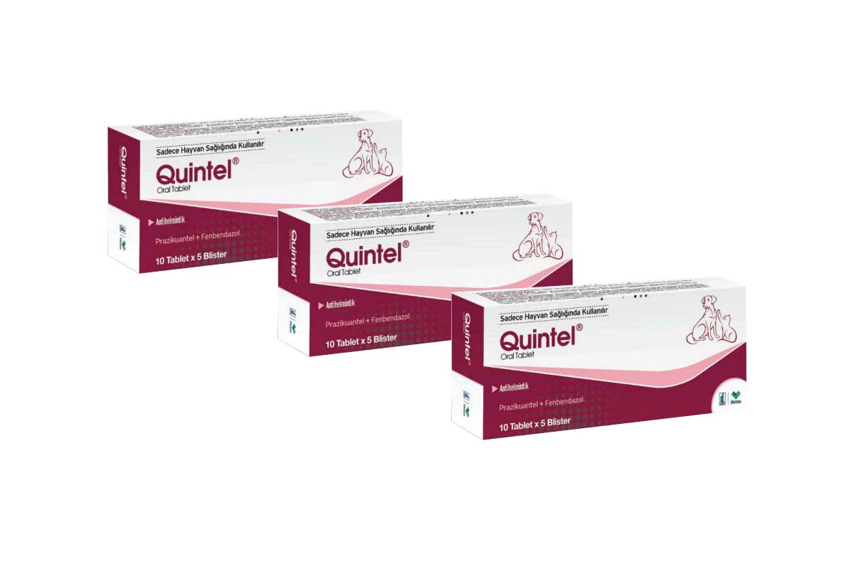 Quintel, kullanmadan önce ve beklenmeyen bir etki görüldüğünde veteriner hekime danışınız. Çocukların ulaşamayacağı yerlerde bulundurunuz.