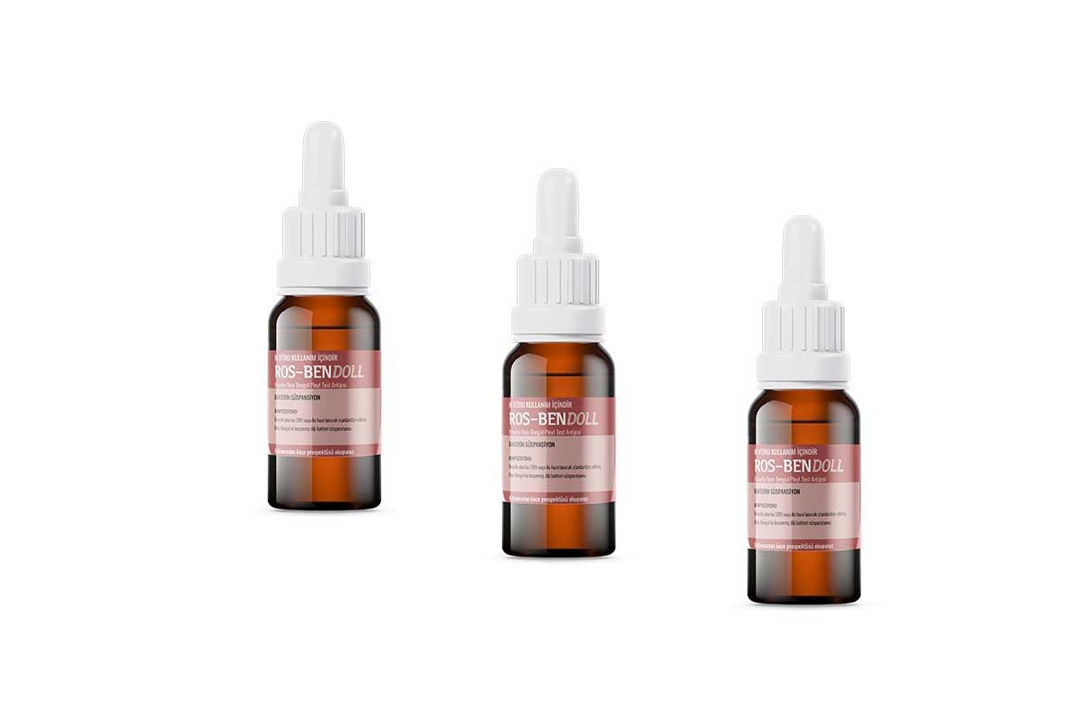 Ros-Bendoll, 2.5, 5 ve 10 ml olarak tip III cam şişelerde bulunan antijen, 40 μl’lik damlalık ve test pleyti ile birlikte karton kutu içine ambalajlanmıştır.